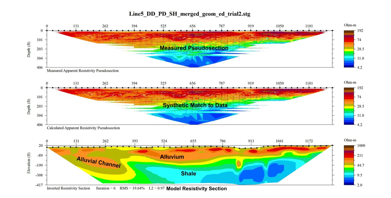 Spectrum specializes in the utilization of electrical resistivity tomography (ERT) and electrical resistivity imaging (ERI), along with induced polarization (IP), for groundwater applications. These applications include the delineation of preferential pathways for groundwater, delineation of aquifers and aquicludes for well siting, and delineation of saline/high TDS/contaminant plumes in groundwater.